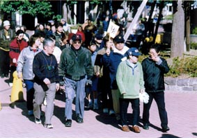 9時45分:地区長、班長は、参加者を誘導して、中央広場まで移動する。
